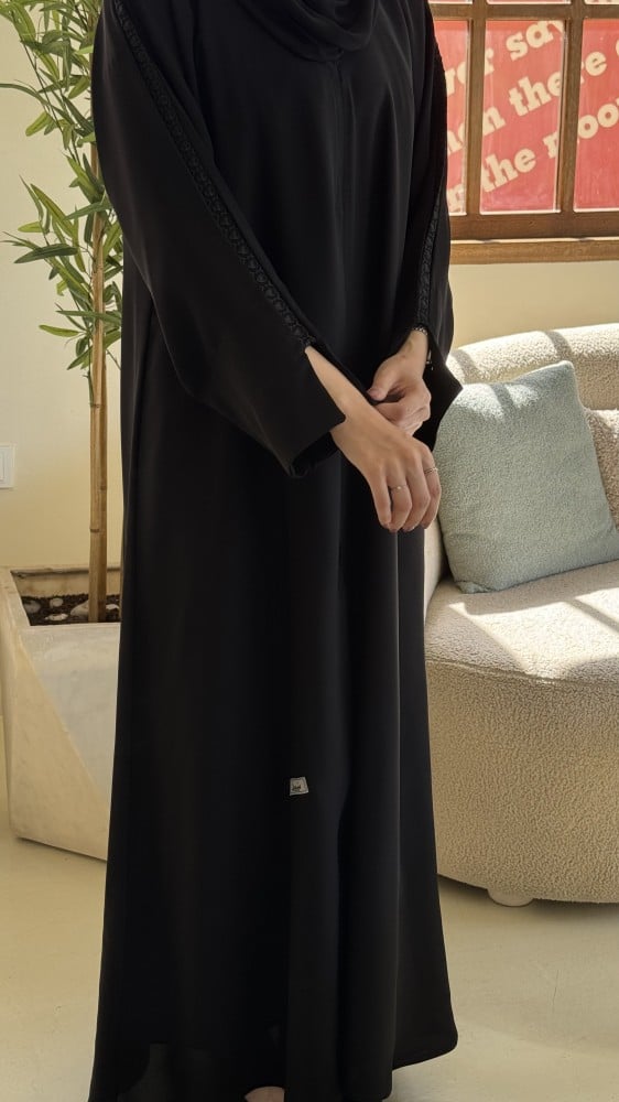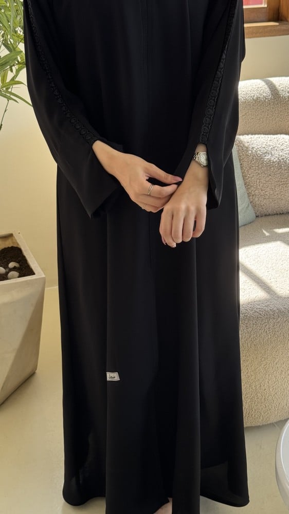 الملحقات : يوجد معها طرحة ساده بطرف من نفس قماش العباية .