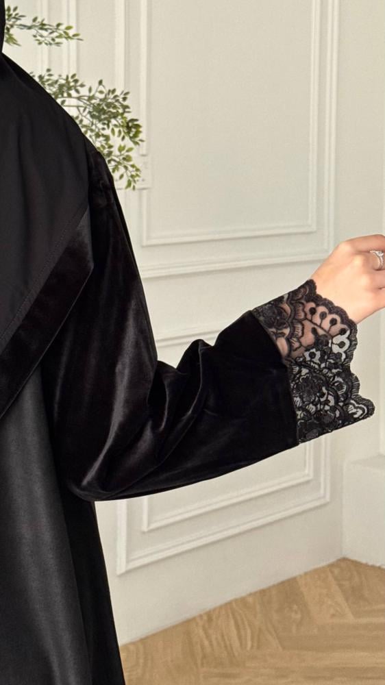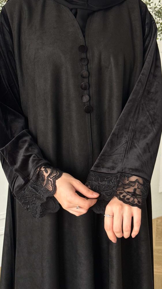 عباية شامواه شتوي  بأكمام مخمل مع طرف دانتيل