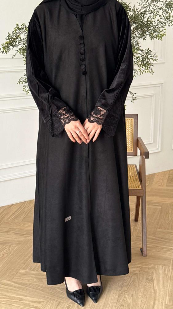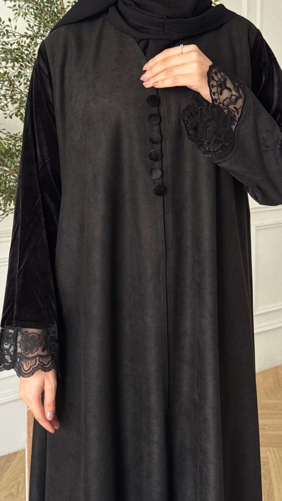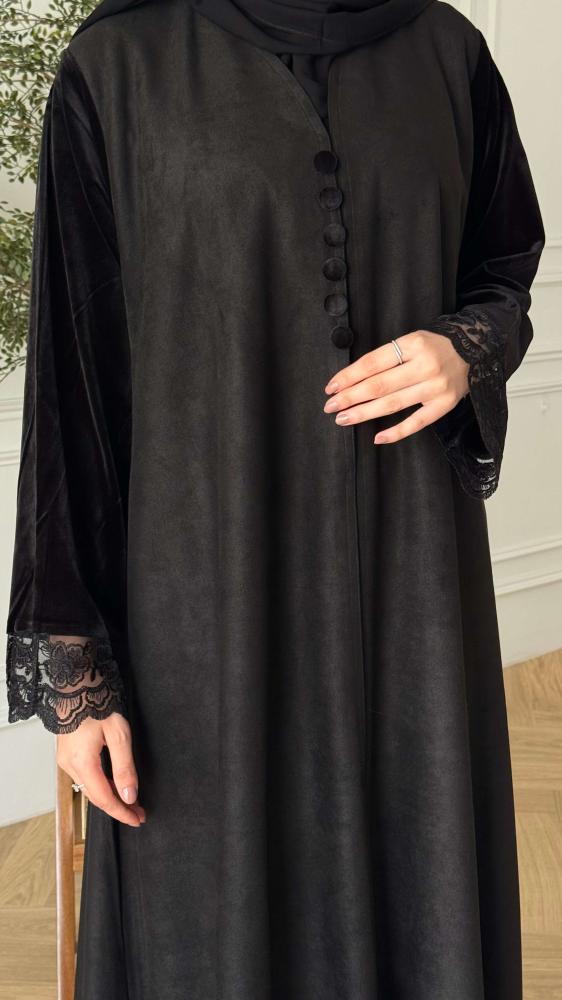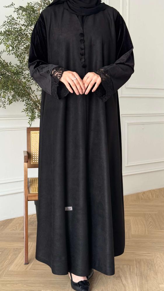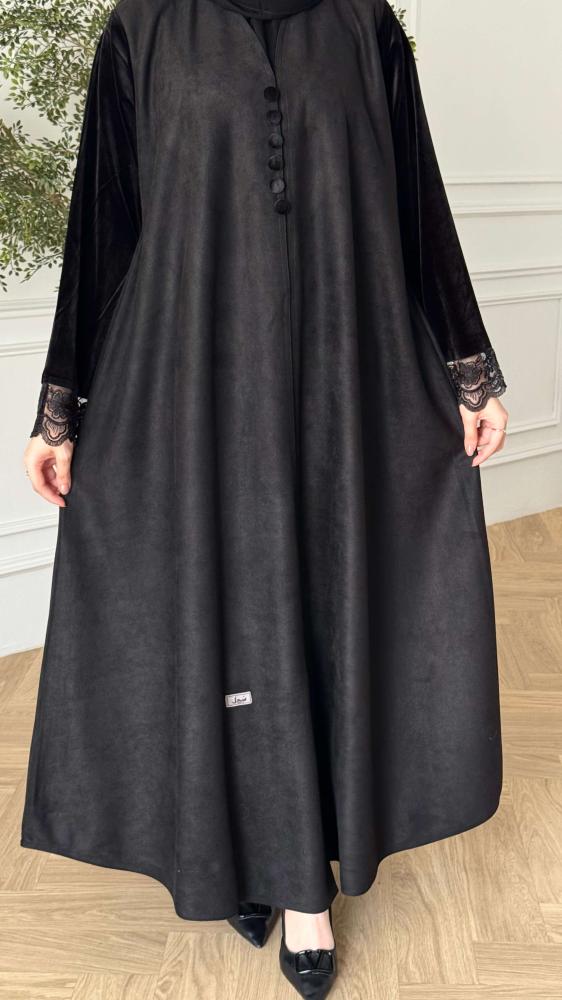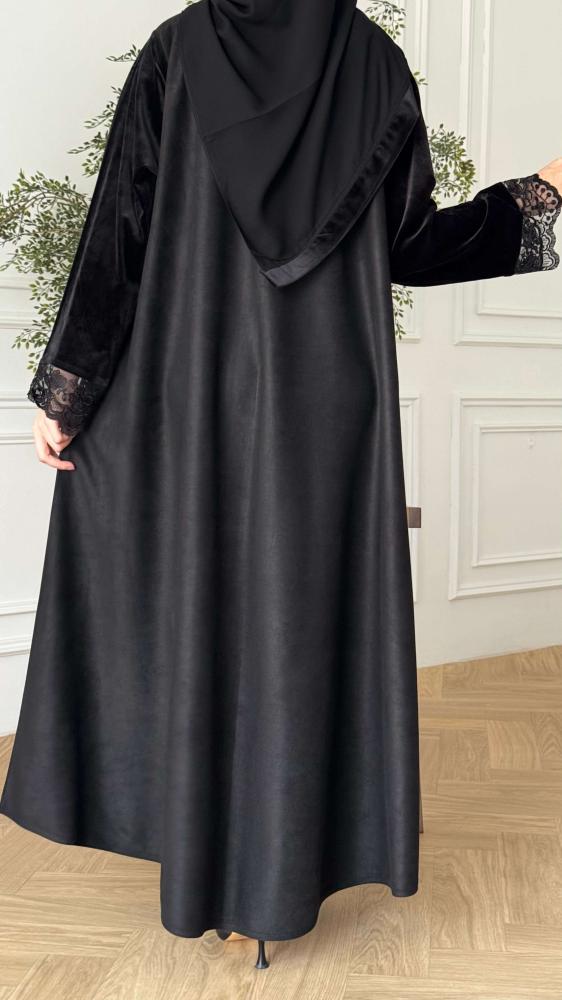 عباية – 1105 – ربع كلوش من قماش شامواه ناعم بأكمام مخمل