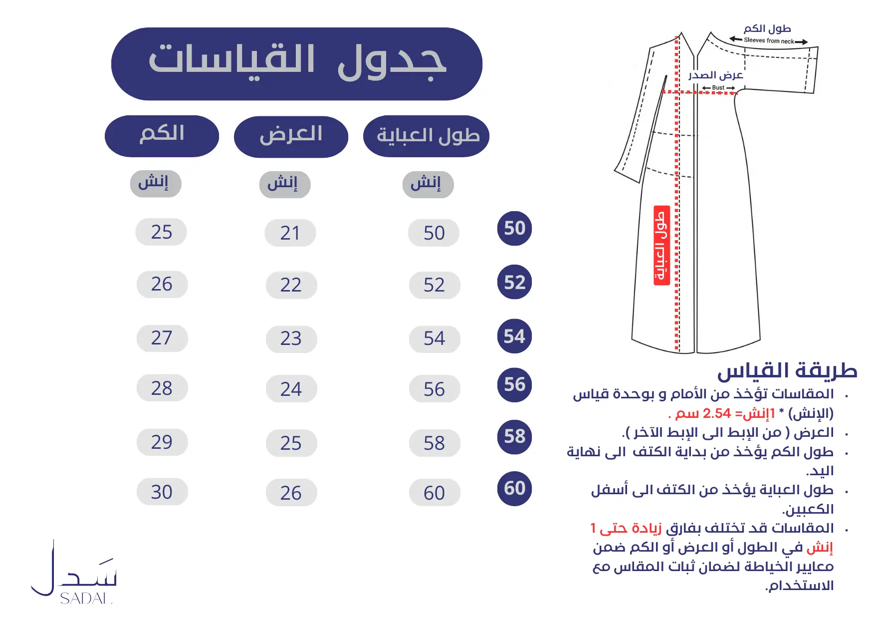 يرجى التأكد من المقاس المناسب قبل إتمام الطلب .
