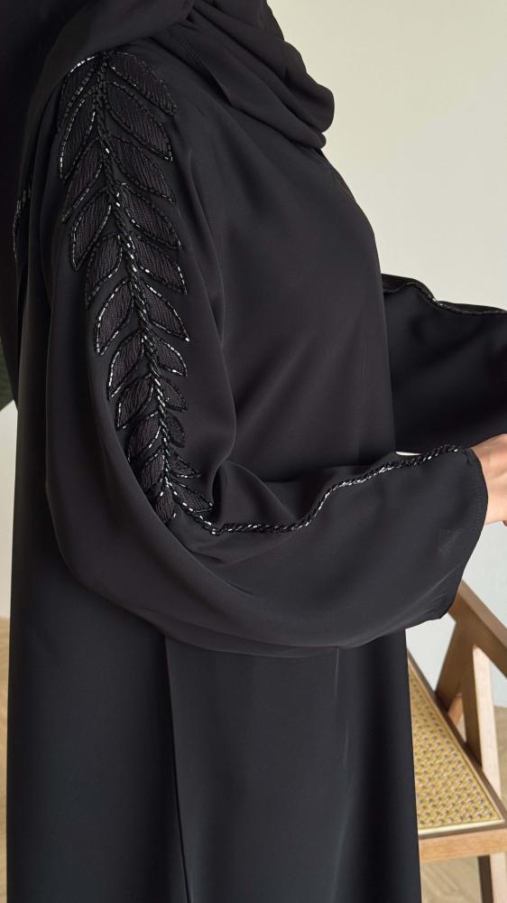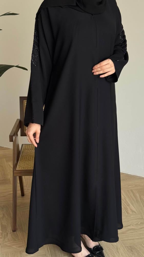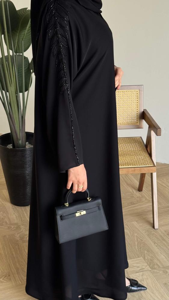 الملحقات : يوجد معها طرحة ساده بطرف من نفس قماش العباية