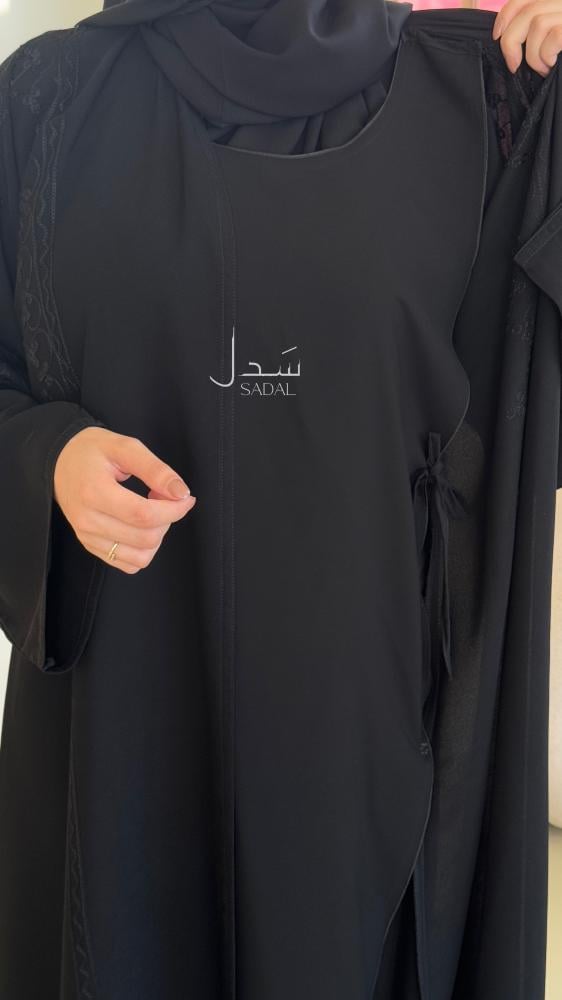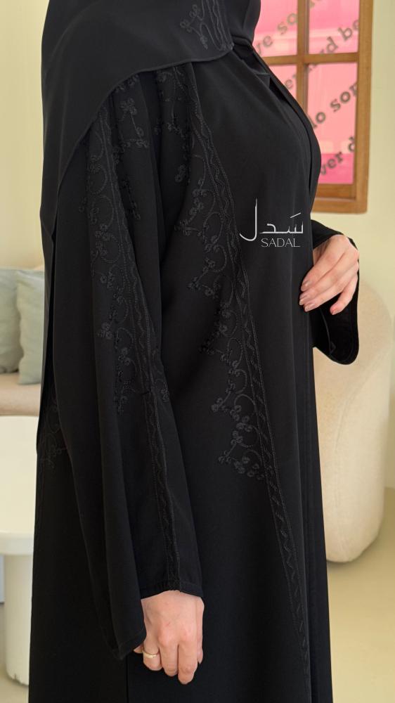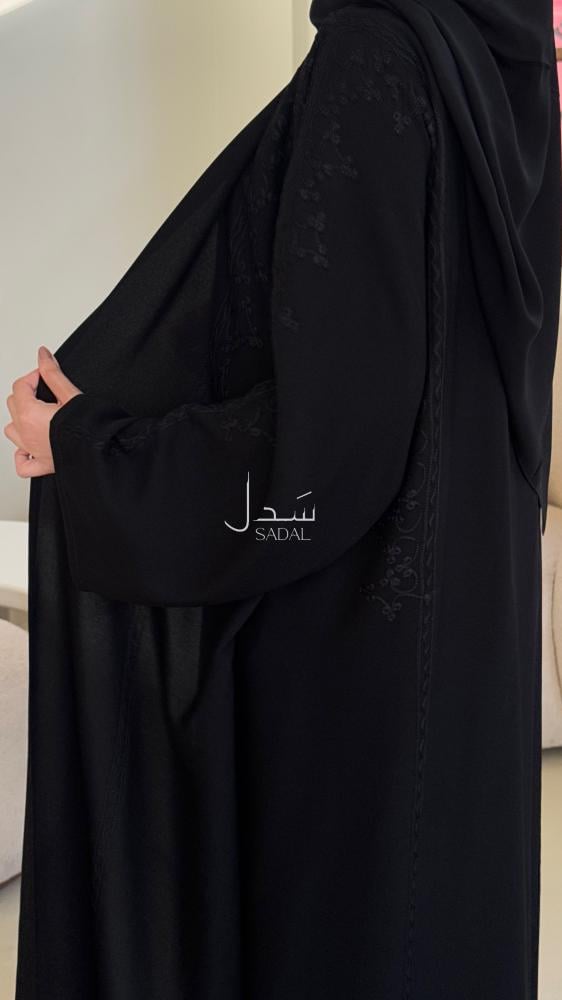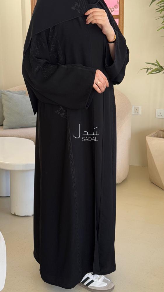 • الملحقات : يوجد معها طرحة ساده بطرف من نفس قماش العباية الاساسي .