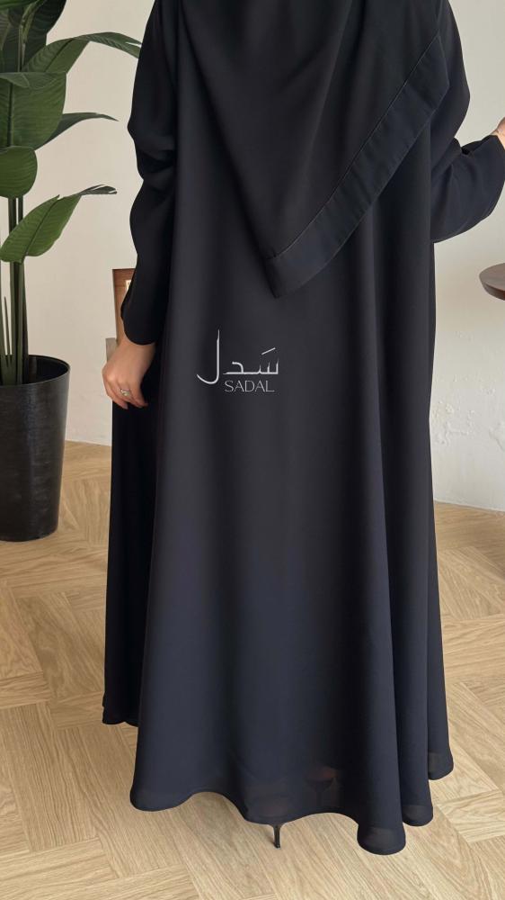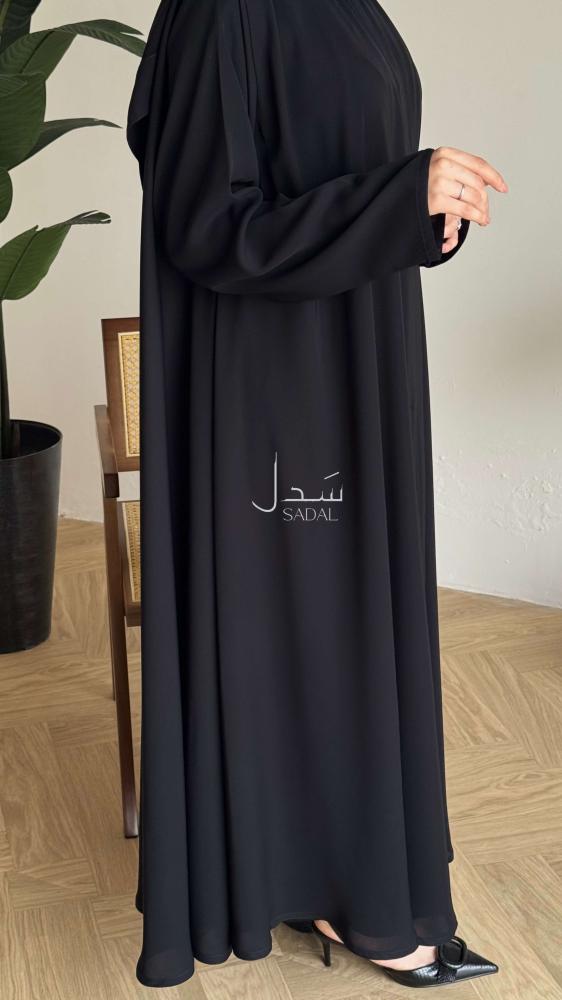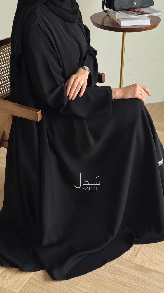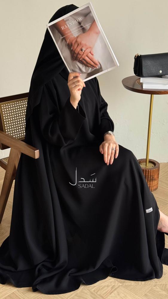 • الملحقات : يوجد معها طرحة ساده بطرف من نفس قماش العباية .