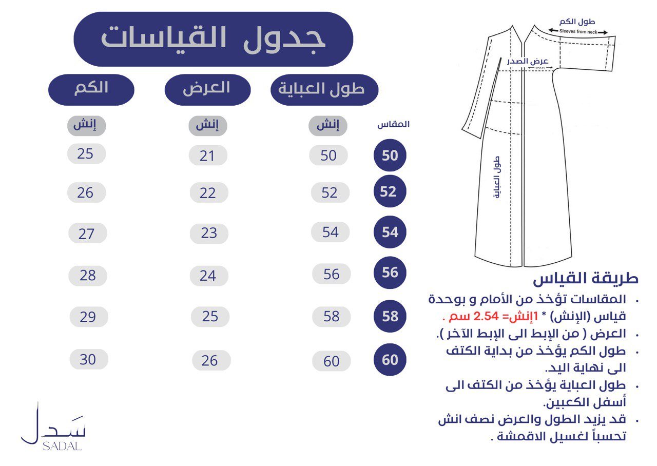 الملحقات : يوجد معها طرحة ساده بطرف من نفس قماش العباية .