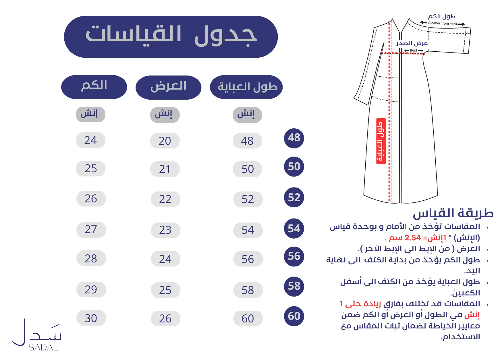- يمكنك التأكد من المقاس من جدول المقاسات المرفق .