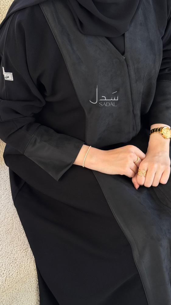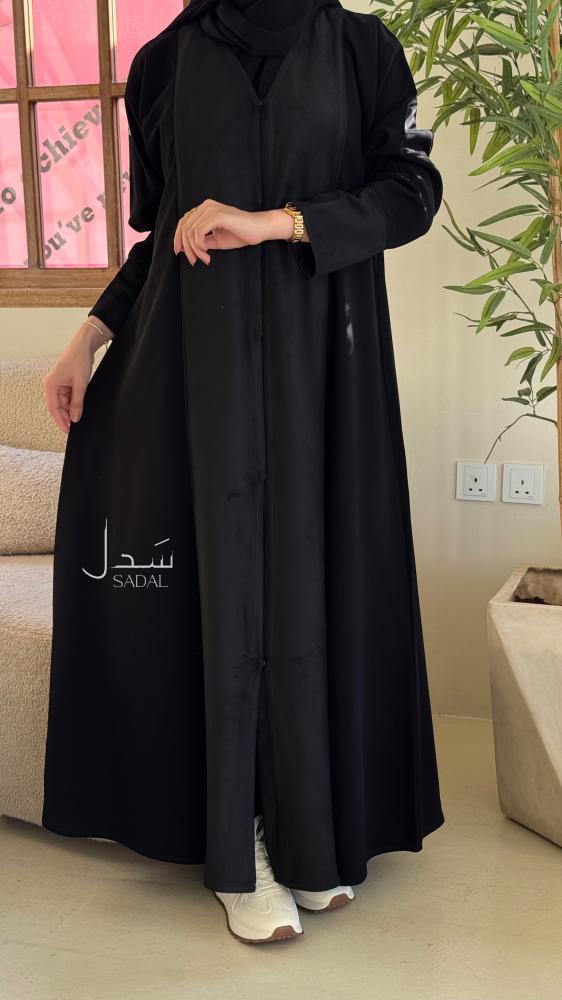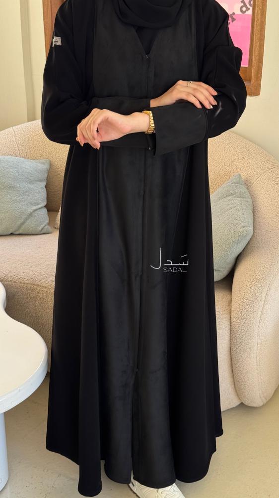 - القصة : قصة ربع كلوش تأتي العباية من أطراف الكم ومن الامام بقماش شامواه .