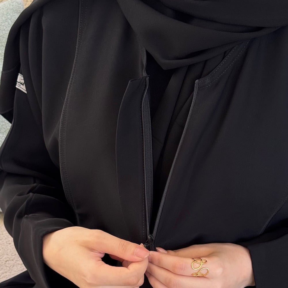 هي عباية سوداء مغلقة بسحاب اغلاق مع أكمام ضيقة مزمومة تم تصميمها لتناسب الخروجات والدوام والجامعة خاصًة أن العباية تم تصميمها بقصة ربع كلوش لتمنحكِ حرية الحركة.