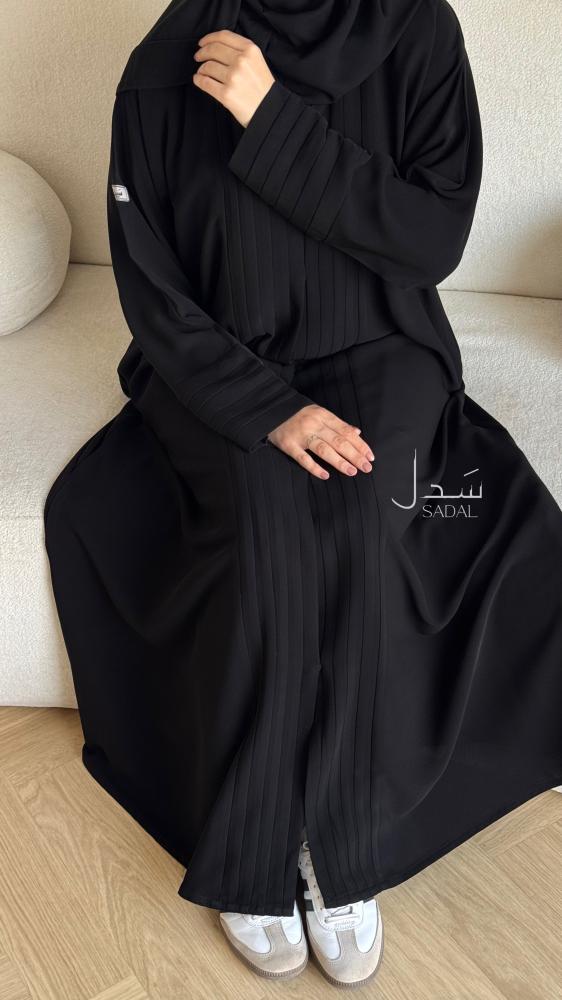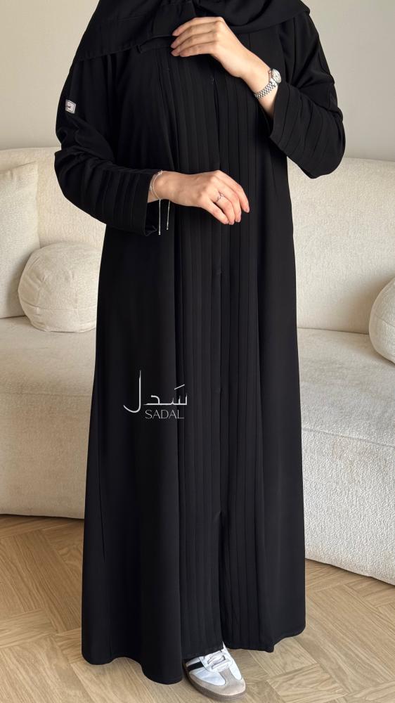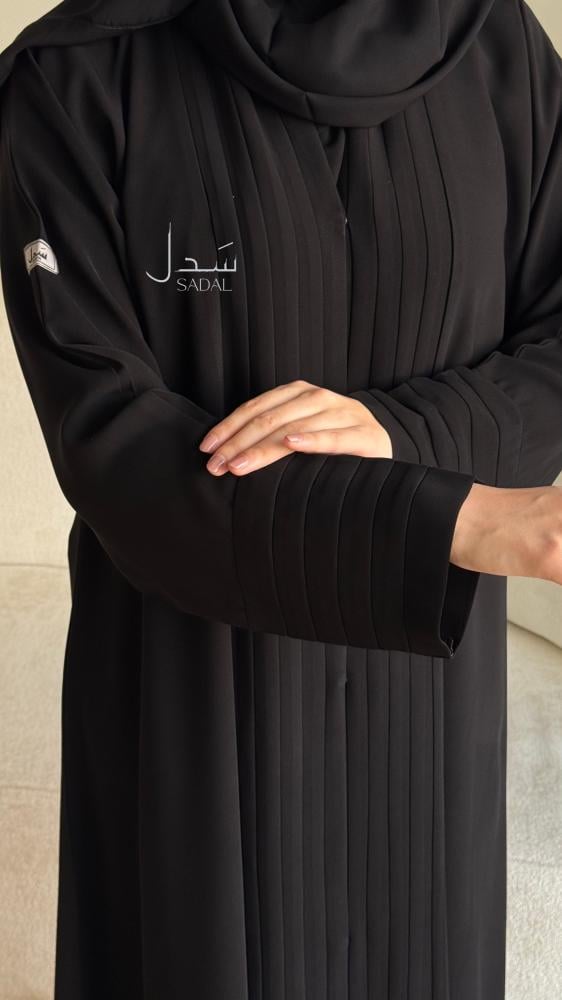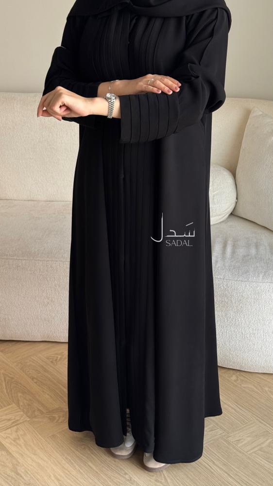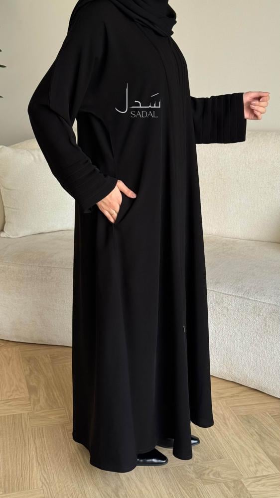 القماش :كريب ملكي كوري سواد فاحم انيق نسيج ناعم و انسيابي مريح.