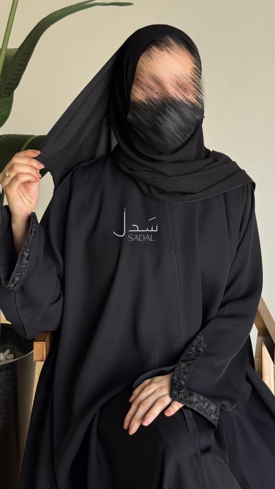 طرحة رأس باللون الأسود بتصميم عملي وأنيق، تتميز بوجود جزء قطني عريض بعرض 6 إنش يساعد على تثبيت الطرحة بشكل مريح أثناء اللبس ويمنع انزلاقها.