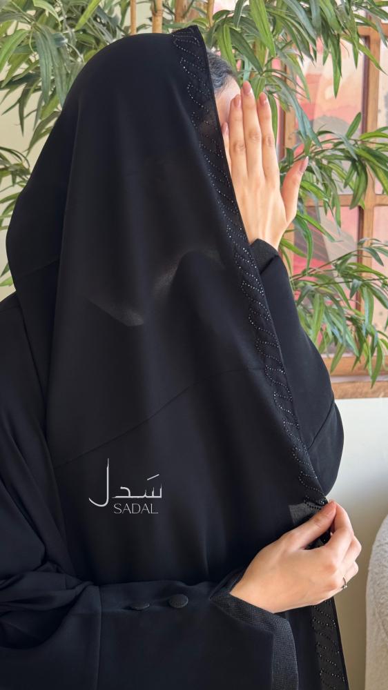 طرحة سوداء بطرف تطريز اسود